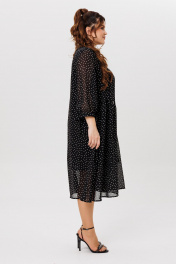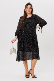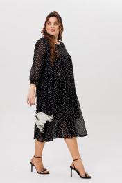 Черное платье на торжество из шифона с воланами Michel chic 2164 черный,горох