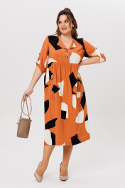 Оранжевое платье из вискозы с раскладными лацканами и карманами Michel chic 2166 геометрия