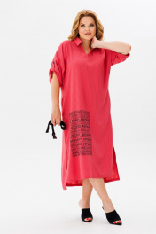Универсальное платье в стиле «casual». Изделие выполнено из приятной на ощупь костюмно-плательной ткани средней плотности. Платье свободного прямого кроя, перед и спинка цельнокроеные, спинка длиннее переда. Горловина с рубашечным воротником и V-образным вырезом. Плечо спущенное, рукав втачной длиной 3/4, застегивающийся на пату и пуговицу. По верху спинки имеется стачная встречная складка, благодаря которой имеется небольшое клешение. По переду снизу платье украшено принтом. В боковых швах имеются карманы, а также боковые разрезы. Платье дополнено поясом, с помощью которого можно обыграть образ, пояс идет в комплекте. Изделие может сочетаться как с кедами, лоферами, так и босоножками, туфлями. Универсальность и практичность платья сделают его любимым в Вашем гардеробе. Длина по спинке 123+-1см, длина рукава 49+-1см. Изделие подойдет на рост 170 см.