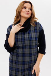 Эффектное, вместе с тем, прекрасно подходящее для повседневной жизни платье. Комфортный прямой силуэт мягко сядет по фигуре и не будет сковывать Ваших движений. Платье выполнено из приятного на ощупь вискозного трикотажа с ненавязчивым блеском. Платье имеет спущенный рукав, который выполнен из контрастной ткани, вырез горловины круглый; сбоку изделия функциональный накладной карман. Украшением платья служит боковой разрез с одной стороны, а также съемный хомут, который идет в комплекте. Платье прекрасно сочетается как с классическими туфлями, так и ботинками. Длина изделия по спинке 114 см +-1 см, длина рукава от плечевого шва 56 см +-1 см. Изделие подойдет на рост 170 см.