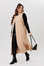 Длинный жилет из пальтовой ткани с разрезами Michel chic 354/1 светло-бежевый