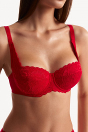Бюстгальтер балконет. Кружевная чашка и часть бретели, комбинированный стан. Бюстгальтер ADEL от MILADY - это проявление нашей любви и заботы к каждой женщине. Результатом уникального сочетания конструктивным решений является идеальная и неощутимая посадка бюстгальтера, формирующая грудь особенно красивой. При изготовлении ADEL