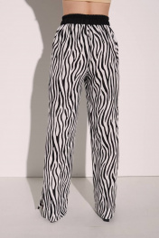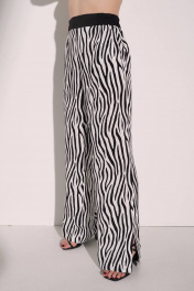 Брюки "Найроби". Актуальный крой сезона - брюки-палаццо. Брюки на резинке, прямо крой, с разрезами внизу На фото - модель 44 размера, костюм размера 44 Дополнительное описание Высота посадки: Завышенная Покрой: Свободный Подкладка: нет Посадка по фигуре: прямая Рисунок: Зебра Декоративные элементы: Принт По назначению: Повседневные, офис Крой брючин: Прямой Конструктивные элементы: Карман Особенности ткани: Мягкая, легкая Фактура материала: Текстильный Тип карманов: В шве Вид застежки: Резинка