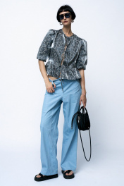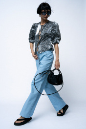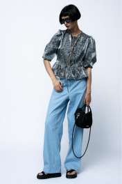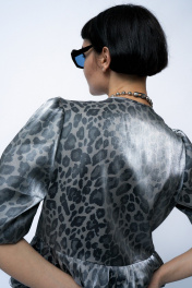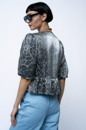 Блуза с баской рукав буфо летняя текстильная леопардовая MilMil 1121 леопардовый_серый