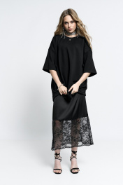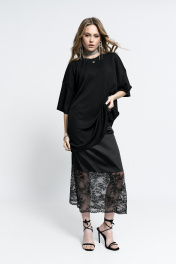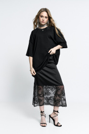 Нарядная юбка из атласа и кружева с боковой молнией MilMil 1151 Вена_черный