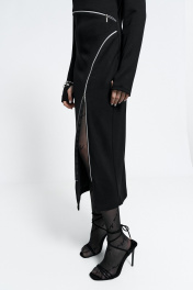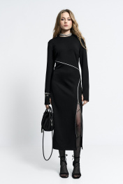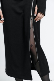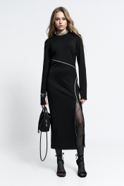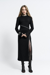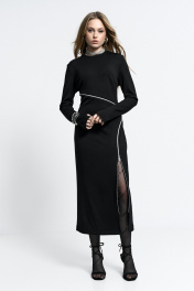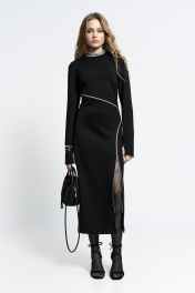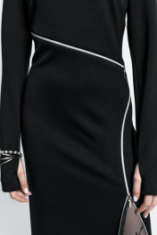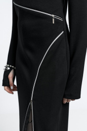 Платье прилегающего силуэта, с молниями-декором по переду. Молнии - функциональные. Застежка - потайная молния в спинке. Внизу рукав - разрез для большого пальца.