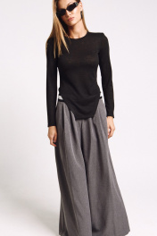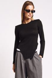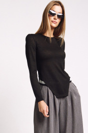 Лонгслив прилегающего силуэта с фигурной линией низа и вставными плечами.Фактурный трикотаж.