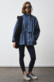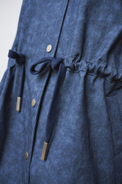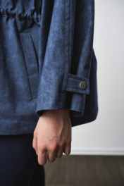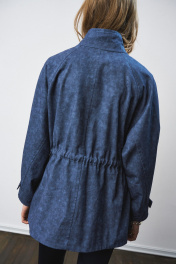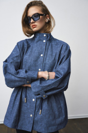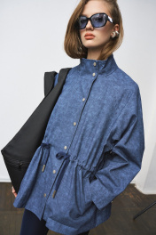 Жакет-парка из фактурного джинса с эффектом замши. Воротник-стойка. Широкий рукав, ширина которого регулируется кнопками. Свободный силуэт, ширина талии регулируется кулиской. Два универсальных размера - S (соответствует 42-44-46), L (соответствует 48-50-52)