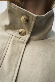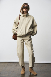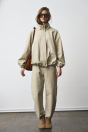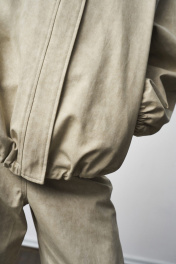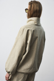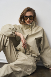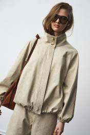 Жакет-бомбер со стойкой, свободного силуэта. В рельефах по переду выполнены карманы. Низ бомбера и низ рукавов стянут резинкой. Застежка на молнию и кнопки. Два универсальных размера - S (соответствует 42-44-46), L (соответствует 48-50-52)