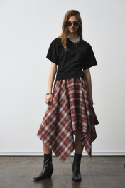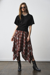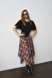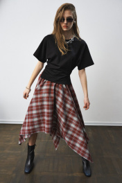 Футболка прилегающая по талии с разрезами по боковым швам и декоративными складками по талии. Два универсальных размера - S (соответствует 42-44-46), L (соответствует 48-50-52)