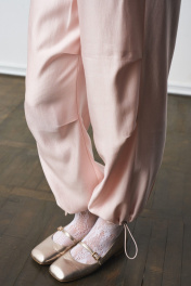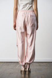 Брюки свободного силуэта со складками в области колена, карманы в боковых швах. По низу брюки собраны резинкой с регулятором ширины. Два универсальных размера - S (соответствует 42-44-46), L (соответствует 48-50-52)