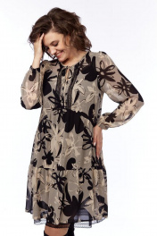 Платье свободного силуэта с кружевом и сеткой Милора-стиль 1035 цветы