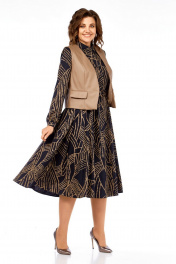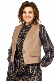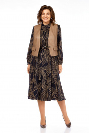 Жилет, платье Милора-стиль 1380/1 черный+капучино_листья
