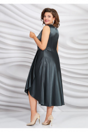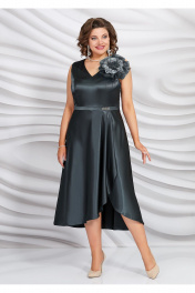Платье из атласа с рельефами, запахом и объемным цветком Mira Fashion 5445