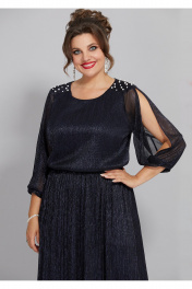 Нарядное женское платье, полуприлегающего силуэта, выполнено из плиссированной ткани. Горловина платья округой формы, на обтачке, лиф платья отрезной по линии талии, на резинке, что обеспечивает комфортное прилегание по талии. По линии плеча выполнены кокетки из основной ткани и декорированы бусинами. Юбка платья немного расклешенного силуэта, присборена по линии талии. Рукав втачной, с разрезами по середине, низ на манжете. Спинка идентична полочке, все платье на трикотажной подкладке. Легкое, элегантное платье прекрасный выбор для торжественных мероприятий! в 52р. Ширина груди- 108см, Ширина талии -80см (на резинке), Ширина бедер- 134см, длина рукава- 47см, ширина рукава 21см.