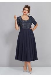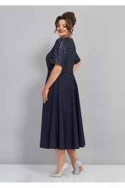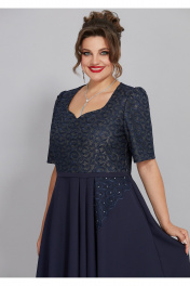 Нарядное женское платье, полу-прилегающего силуэта, выполнено из текстиля и кружева. Лиф платья отрезной по линии талии, выполнен из кружева на подложке из серебра. Горловина платья фигурной формы, на обтачке, также на лифе обработаны рельефы, по линии талии декоративный пояс из однотонной ткани. Рукав втачной, длиной 3/4, выполнен из кружева. Юбка платья расклешенная, с складками по линии талии и аппликацией, декорированной стразами. Спинка идентична полочке, отрезная по линии талии, со средним швом и рельефами, в среднем шве потайная молния. Эффектно, нарядное платье отличный выбор! в 52р. Ширина груди- 53см, Ширина талии -47см, Ширина бедер- 70см, длина рукава- 32см, ширина рукава 20см.