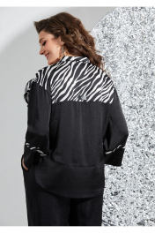 Брючный комплект, свободного покроя, выполнен из шелкового атласа с крэш-эффектом и принтованного атласа. Состоит из блузы и брюк, блуза выполнена из принтованного атласа и однотонного атласа, горловина обработана планкой с пуговицами и плосколежащим воротником, планка из однотона. На лифе обработана кокетка из принтованного атласа, также на полочке съемный цветок из принтованного атласа, украшен бахрамой. Рукав втачной, оптимальной длины, по низу на манжете из однотона, с втачным кантом из принтованного атласа. Спинка выполнена идентична полочке, с кокеткой из принтованного атласа, декорированная нашивкой, по низу фигурная обтачка, в боковых швах выполнены разрезы. Брюки выполнены из шелкового атласа с крэш-эффектом, однотонного цвета. Верх брюк обработан притачным поясом с резинкой, застежка по переду на молнию и пуговицу. Брюки свободного покроя, с карманами в боковых швах. Эффектный комплект из легких тканей сделает ваш образ легким и запоминающимся! в 52р. Блуза: ширина груди 57см, ширина талии 57см резинка, ширина бедер 58см, длина рукава 44см, ширина рукава 22см. Брюки: Ширина талии 42см резинка, Ширина бедер 58см. Длина блузы 67см, длина брюк по боковому шву 106см, длина брюк по внутреннему шву 78см.