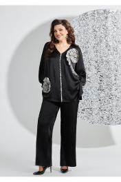 Брючный комплект, свободного покроя, выполнен из шелкового атласа с крэш-эффектом, однотонного и принтованного атласа. Состоит из блузы и брюк, блуза выполнена из однотонного атласа, горловина V-образной формы, на обтачке. На лифе обработан средний шов, с кантом и декоративные цветы из принтованного атласа, присборенные и настрочены ассиметрично на полочке. Рукав втачной, оптимальной длины, по низу с встречной складкой. Спинка выполнена из поднотонного атласа, по боковым швам выполнены разрезы. Брюки выполнены из шелкового атласа с крэш-эффектом, однотонного цвета. Верх брюк обработан притачным поясом с резинкой, застежка по переду на молнию и пуговицу. Брюки свободного покроя, с карманами в боковых швах. Эффектный комплект из легких тканей сделает ваш образ легким и запоминающимся! в 60р. Блуза: ширина груди 66см, ширина талии 66см резинка, ширина бедер 69см, длина рукава 48см, ширина рукава 23,5см Брюки: Ширина талии 50см резинка, Ширина бедер 66см. Длина блузы 72см, длина брюк по боковому шву 105см, длина брюк по внутреннему шву 75см.