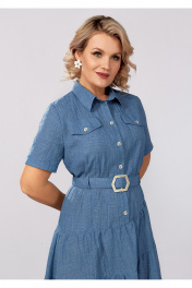 Стильное платье полуприлегающего силуэта, выполнено из летней ткани с эффектом «тай-дай». Горловина платья обработана воротником, застежка по переду на планку с пуговицами. На полочке обработаны кокетки и рельефы с двойной отстрочкой, также в шов кокетки вставлены клапаны. Юбка платья имеет ассиметричный подрез ниже линии талии, состоит из двух, присбореных воланов. Спинка идентична полочке, с кокеткой, рельефами, по линии талии настрочены шлевки и в комплект входит съемный пояс из основной ткани, с пряжкой. Рукав втачной, укороченный, на спинке выполнена объемная аппликация. Стильное платье для ценителей комфорта в сочетании с оригинальным кроем! в 52р. Ширина груди- 56см, Ширина талии -50см, Ширина бедер- 64см, длина рукава- 26см, ширина рукава 19,5см