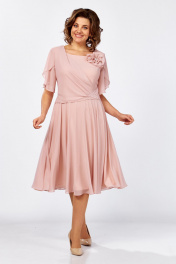 Женское платье полуприлегающего силуэта, выполнено из шифона, на трикотажной подкладке. Лиф платья отрезной по линии талии, горловина округлой формы, на обтачке, также на лифе обработана ассиметричная, отлетная деталь со складками с одной стороны, которая уходит в боковой шов и декорирована стразами. Юбка расклешенная, выполнена из шифона, спинка со средним швом и рельефами, в среднем шве потайная молния. Рукав втачной, из шифона, расклешенный, укороченный. Нарядное платье из шифона, декорированное съемным цветком, отлично подойдет для торжественных мероприятий! в 52р. Ширина груди- 53см, Ширина талии -47см, Ширина бедер- 75см, длина рукава- 32см, ширина рукава 24см.