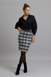 Деловая юбка-карандаш из текстиля с накладными карманами Mirolia 1055 черно-белая-клетка