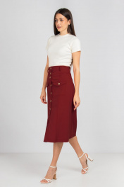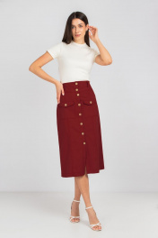 Трапециобразная хлопковая юбка с карманами и пуговицами Mirolia 1113 бордо