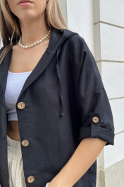Блузон изготовлен из качественного мягкого льна с эффектом мятости прямого силуэта на пуговицах с капюшоном, со спущеной линией плеча. По переду накладные карманы. Рукав 3/4 с патой, застёгивается на пуговицу. Длина изделия -р-ры 46,48,50 -68 см , р-ры 52,54,56 - 72см . Длина рукава с учётом плеча-52см. Ширина по обхвату груди и обхвату бёдер: 46р-106см, 48р- 110см, 50р- 114см, 52р- 118см, 54р- 122см, 56р- 126см Ширина по обхвату бёдер: 46р -104 см , 48р -108 см 50р -113 см, 52р -118см, 54р -124 см , 56р -128 см.
