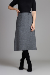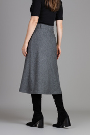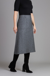 Мидидлина юбка-трапеция из мягкой ткани с накладными карманами Mirolia 1239 темно-серая_диагональ