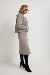 Женский Блузон осенне- зимнего ассортимента от белорусского производителя из мягкой приятной ткани в рисунок"ёлочка" . Застежка центральная на петли и декоративные пуговицы , по горловине воротник-стойка. По полочкам обработан функциональный накладной карман .Линия плеча чуть спущена, рукав втачной, низ рукава обработан притачной манжетой . Хорошо сочетается в комплекте с юбкой м 1263 серая"ёлочка" и Брюками м 951 серая "ёлочка" , 1275 серая "ёлочка". Для выбора нужного размера воспользуйтесь размерной сеткой ( таблица).