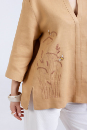 Туника с вышивкой по переду из натурального мягкого льна с "эффектом мятости" свободного силуэта. Рукав втачной 3/4. Горловина окантована, по бокам- разрезы.