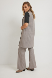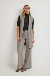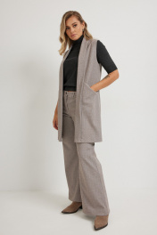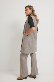 Жилет из мягкой приятной ткани "ёлочка"осенне-зимнего асоортимента. Жилет свободного прямого кроя с большими внутренними карманами по переду. Без застёжки.Хорошо подходит к брюкам м 1265 коричневая "ёлочка" .Для выбора нужного размера воспользуйтесь размерной сеткой