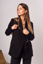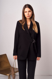 Деловой черный жакет с рельефами и поясом Mirolia 873 черный