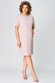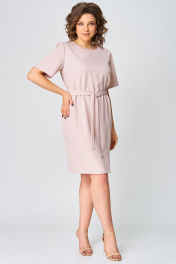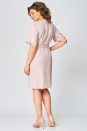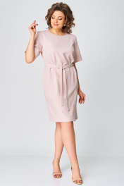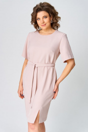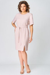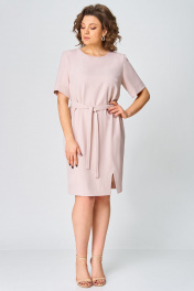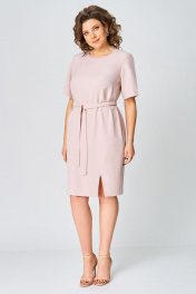 Платье-футляр полуприлегающего силуэта выполнено из поли вискозной ткани. Округлый вырез горловины, обработан обтачкой. По переду застрочены нагрудные вытачки. По низу переда разрез обработан обтачкой. Синка с талевыми вытачками, средним швом и застежкой на потайную тесьму-молнию. Рукав втачной, одношовный длиной ¾. Имеется съемный пояс. Платье без подкладки.