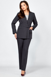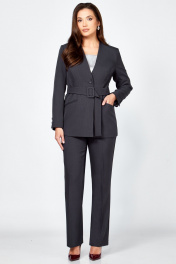 Костюм двухпредметный состоит из жакета и брюк. Элегантный дизайн костюма с брюками подарит комфорт и уверенность в себе. Жакет с центральной застежкой на 2 петли и пуговицы с прорезными функциональными карманами по переду. Рукав втачной двухшовный со шлицей декорированной пуговицами. Брюки прямые от линии колена, застежкой в боковом шве на потайную молнию. В комплект входит пояс с пряжкой. Костюм двойка отлично подойдет для офиса, для праздника, на каждый день для прогулок. Длина жакета 69 см, длина брюк 110 см