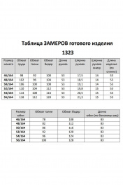 Комплект, состоящий из жакета и юбки. Жакет полуприлегающего силуэта выполнен из трикотажного полотна . По переду жакета настрочены карманы обманки с листочкой с декоративной тесьмой и пуговицей. Так же декоративная тесьма по горловине переда. Рукав втачной двухшовный. Спинка со средним швом и талиевыми вытачками. Застегивается жакет на 4 пуговицы и петли. Жакет без подкладки. Длина рукава- 20,5 см, длина по спинке-53 см.Юбка на широкой обтачке А- силуэта, на подкладке из плащевой ткани. По переднему и заднему полотнищу заложены складки. По бокам расположены наклонные карманы. Застежка сзади на потайную тесьму-молнию. Длина юбки по боковому шву- 83см.