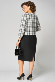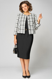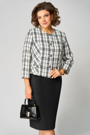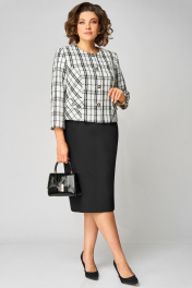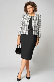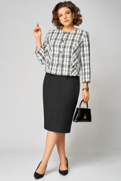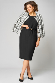Красивый и стильный комплект в элегантном сочетании однотонного платья и жакета в клетку подойдет и для строгого образа, и для создания светлого, яркого и нежного лука с романтичными мотивами. Жакет слегка приталенного силуэта на подкладке без воротника с застежкой на 4 петли и пуговицы. По переду жакета клапаны с декоративной пуговицей. Рукав втачной двухшовный длиной 7/8. Спинка со средним швом и талевыми вытачками. Платье полуприлегающего силуэта на подкладке, слегка со спущенной линией плеча. По переду частичный подрез по талии. В среднем шве спинки потайная молния и разрез по низу. Образ дополняет ремень с оригинальной пряжкой. Длина жакета 50 см, длина рукава 51см, длина платья 106 см.
