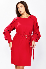 Романтичное платье прямого силуэта, без подкладки. Округлый вырез горловины обработан бейкой. Перед с нагрудной вытачкой. Рукав реглан с вырезом и двумя рюшами. Рукав с манжетой по низу. застегивается на 2 пуговицы и петли. Спинка со средним швом и вырезом «капелька» с завязками на концах с наконечниками. Имеется съемный пояс-завязки с кольцом и наконечниками на концах. Длина рукава от горловины- 69см, длина по синке-97см.