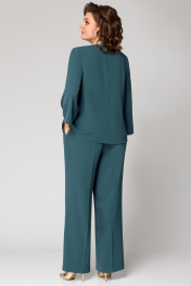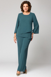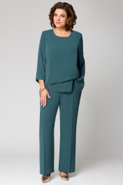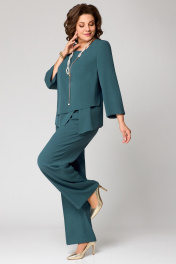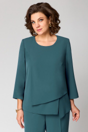 Элегантный женский комплект прямого силуэта из легкой струящейся ткани.Туника прямого силуэта. Перед состоит из нижней детали и с боковым подрезом и шлицей с левой стороны, нагрудные вытачки идут от плечевого среза . Верхняя деталь переда ассиметричной формы. Спинка со средним швом и застежкой на потайную тесьму-молнию. Округлый вырез горловины. Рукав втачной одношовный. Брюки прямого силуэта на притачном поясе, с посадкой на талии, с застежкой на тесьму- молнию и 1 пуговицу и петлю, с боковыми наклонными карманами на передних половинках брюк . По передним половинкам брюк заутюжены стрелки. Для лучшего прилегания брюк в области талии в поясе со стороны спинки вставлена резинка. Укарашение в комплект не входит.