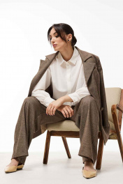 Демисезонный костюм из ткани: брюки и жакет Mislana 1031 коричневый