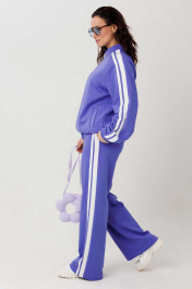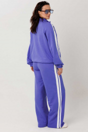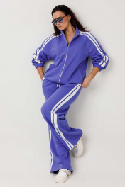 Стильный спортивный костюм в актуальном силуэте — комфортная база для города, путешествий и повседневных образов. Модель выполнена из плотного трикотажного полотна с мягкой, приятной к телу фактурой. Хлопок обеспечивает воздухопроницаемость и комфорт, полиэстер повышает износостойкость и формоустойчивость, а спандекс добавляет эластичность и свободу движений. Куртка прямого силуэта, с центральной застёжкой на тесьму-молнию. Рукав-реглан с притачными манжетами на резинке. Низ изделия обработан притачным поясом на резинке. Функциональные боковые карманы с листочками. Контрастные лампасы по линии рукава. Брюки прямого свободного кроя, с боковыми карманами. Пояс притачной, на широкой резинке с дополнительной регулировкой шнуром. Контрастные лампасы по боковым швам. Низ брюк свободный, без манжет. Костюм представлен в двух цветовых решениях: насыщенный сине-фиолетовый с белыми лампасами и тёмно-серый с бледно-лимонными лампасами. Благодаря продуманной конструкции и качественной обработке швов изделие хорошо держит форму, не деформируется после стирки и подходит для активной носки. Идеальный вариант для тех, кто ценит сочетание функциональности, комфорта и современного спортивного стиля.