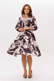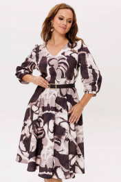 Платье женское полуприлегающего силуэта отрезное по линии талии. Лиф переда с нагрудными и талевыми вытачками. Горловина V-образная. По среднему шву спинки сверху застёжка потайная молния. Юбка расклешённая. Рукава одно шовные втачные, по низу рукава манжета, по окату в области плеча небольшая сборка. Изделие дополняет ремень. Платье без подкладки.