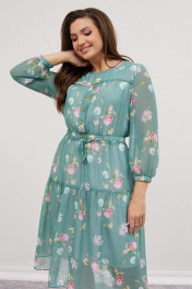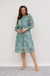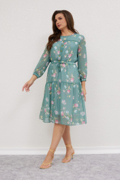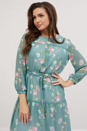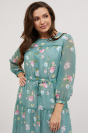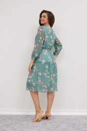 Платье из шифона с воланом и тонким поясом Mislana 616 изумрудный_фон