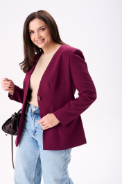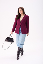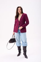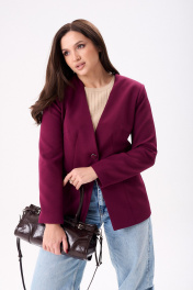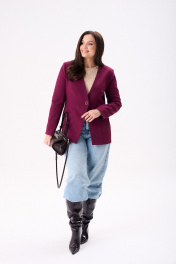 Жакет женский полуприлегающего силуэта на подкладке, застёгивается на одну петлю и пуговицу. По переду нагрудные и талевые вытачки, боковой подрез и втачные карманы, а по спинке центральный шов и рельефы. Рукава двух шовные втачные.
