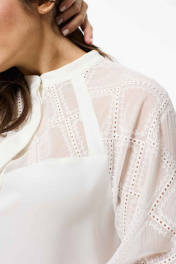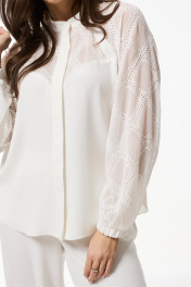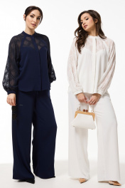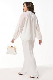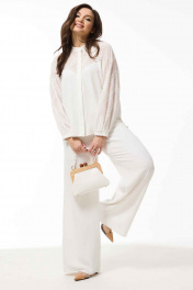 Демисезонный костюм из текстиля: блуза и расклешенные брюки Mislana 935/3 белый