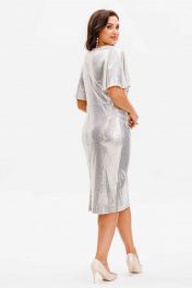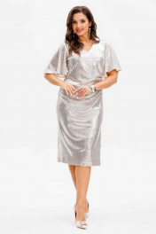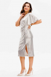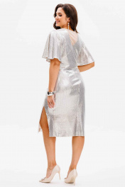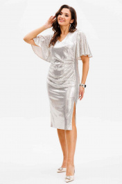 Эффектное платье с dрапировкой и разрезом, украшенное пайетками Mislana С1045-1 серебро