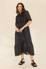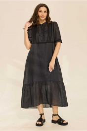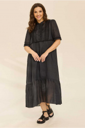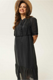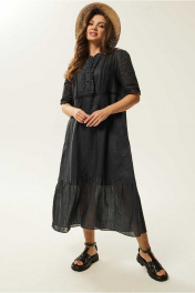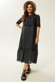 Черное летнее платье из кружев и текстиля с воланами Mislana С941/1