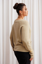 Элегантный и уютный джемпер из мягкого трикотажа — идеальный выбор для тех, кто ценит комфорт и стиль в повседневной жизни. Модель выполнена в нежном оливковом оттенке, который легко сочетается со многими цветами одежды. V-образный вырез подчеркивает линию шеи и создает эффект стройности, а длинные рукава обеспечивают тепло и свободу движений. Кардиган дополнен двумя накладными карманами на передней части, что добавляет практичности и стиля. Застежка на пуговицы позволяет регулировать посадку и создавать разнообразные образы.
