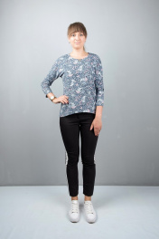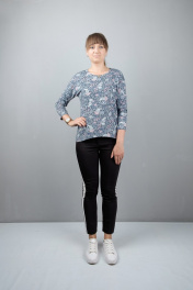 Блуза летучая мышь. Рукав 3/4 узкий. Фигурный низ. Перед короче, зад длиннее. Длина изделия: 63 см Длина рукава: 48 см