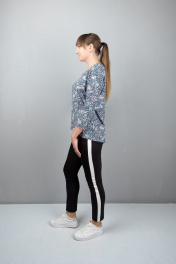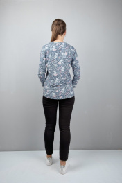 Серый летучий силуэт блузы из трикотажа с длинным рукавом и люрексом Mita КМ361 голубой