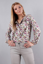 Длина изделия: 58 см Длина рукава: 60 см Блуза свободного силуэта на манжете. Длинный рукав. Круглая горловина. Застежка планка на кнопках.